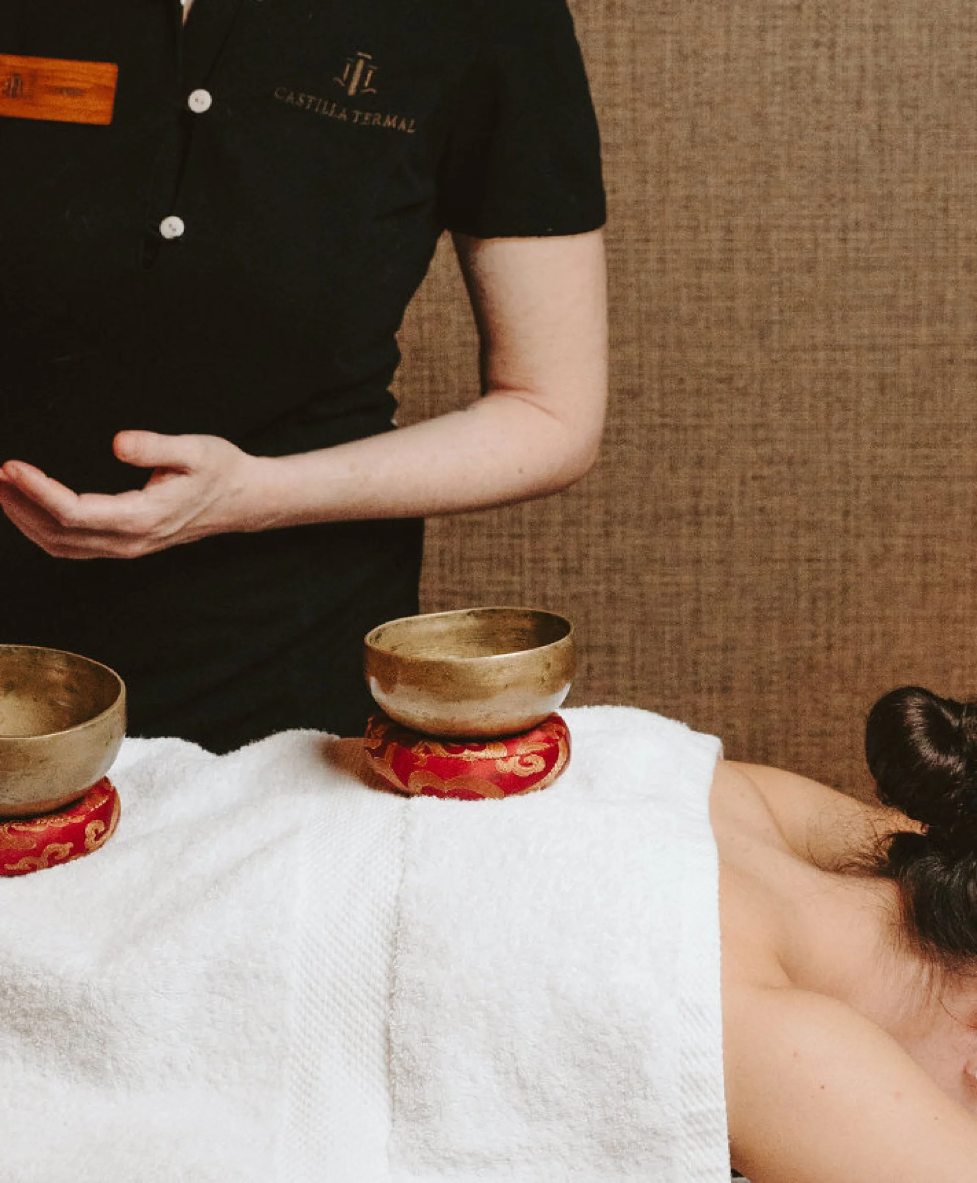 Masaje inspirado en la tradición tibetana con aromaterapia y cuencos vibrantes. Duración 55 minutos.