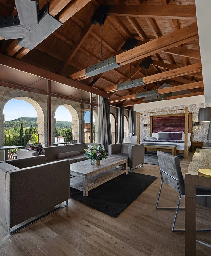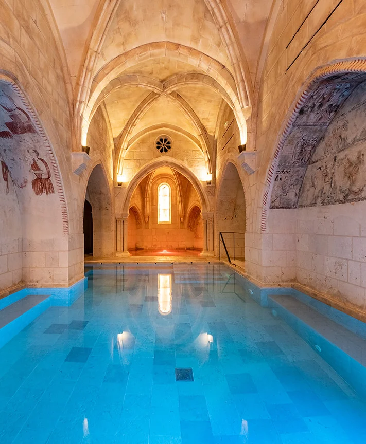 Situado en pleno corazón de la Ribera del Duero, el hotel Castilla Termal Monasterio de Valbuena, el primer balneario 5 estrellas de Castilla y León, se encuentra ubicado en uno de los Monasterios Cistercienses mejor conservados de Europa su edificio data del siglo XII, convertido en un exclusivo complejo turístico, en la Milla de Oro de la Ribera del Duero, el Monasterio de Santa María de Valbuena alberga la sede de la Fundación Las Edades del Hombre, zona termal con cabinas de la prestigiosa marca de cosmeticos Spa by Clarins, una amplia oferta de restauración, cafetería con terraza, gimnasio, huerto ecológico, jardín de especias, bodega y viñedo.