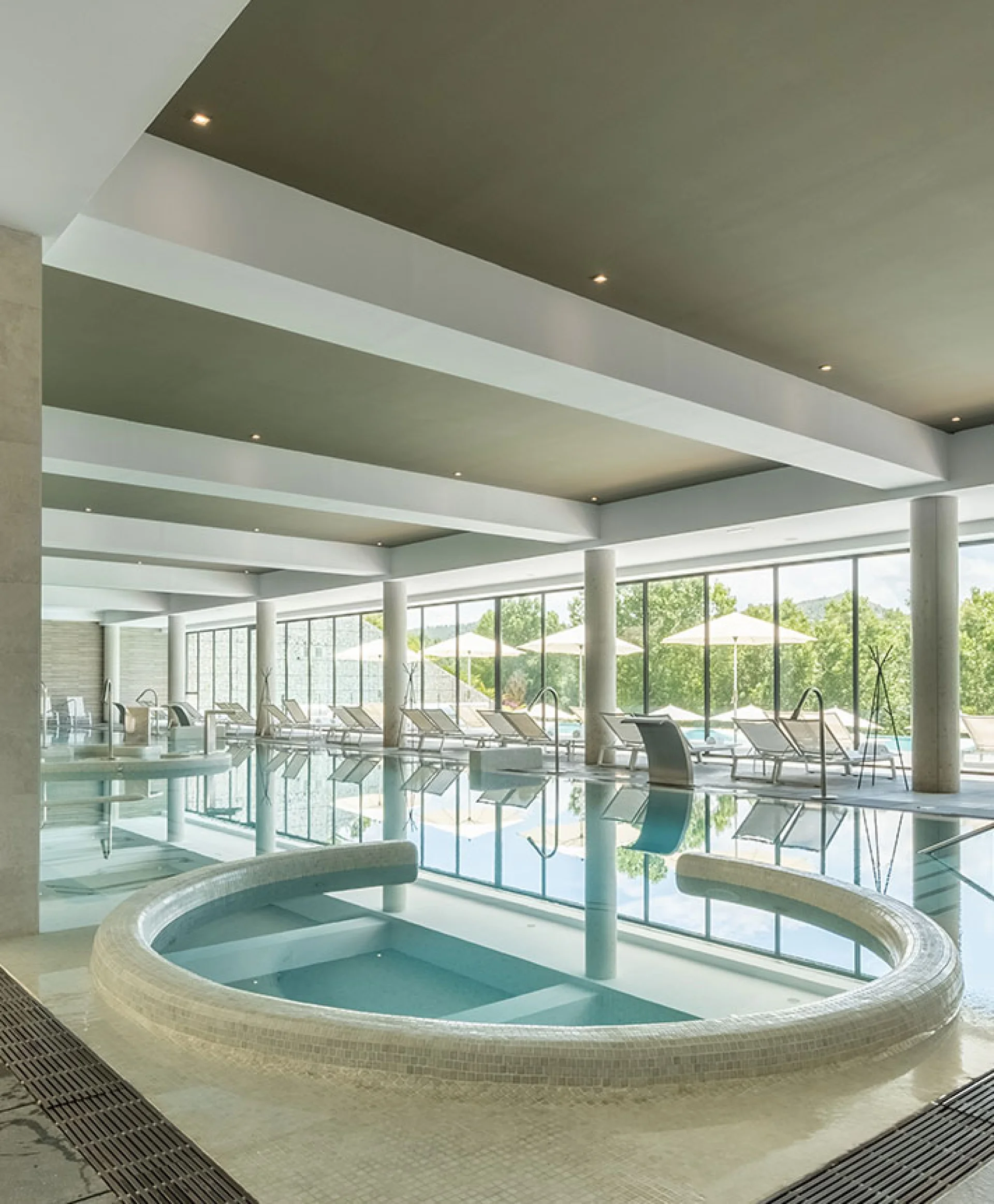 It includes access to the Thermal Pool* made up of different jacuzzis, beds and individual massage seats with bubbles, a series of relaxing jets, curtains and water cannons. Ideal for activating the circulation, relaxing the muscles and producing a general feeling of well-being. *Wellness pool at Castilla Termal Brihuega